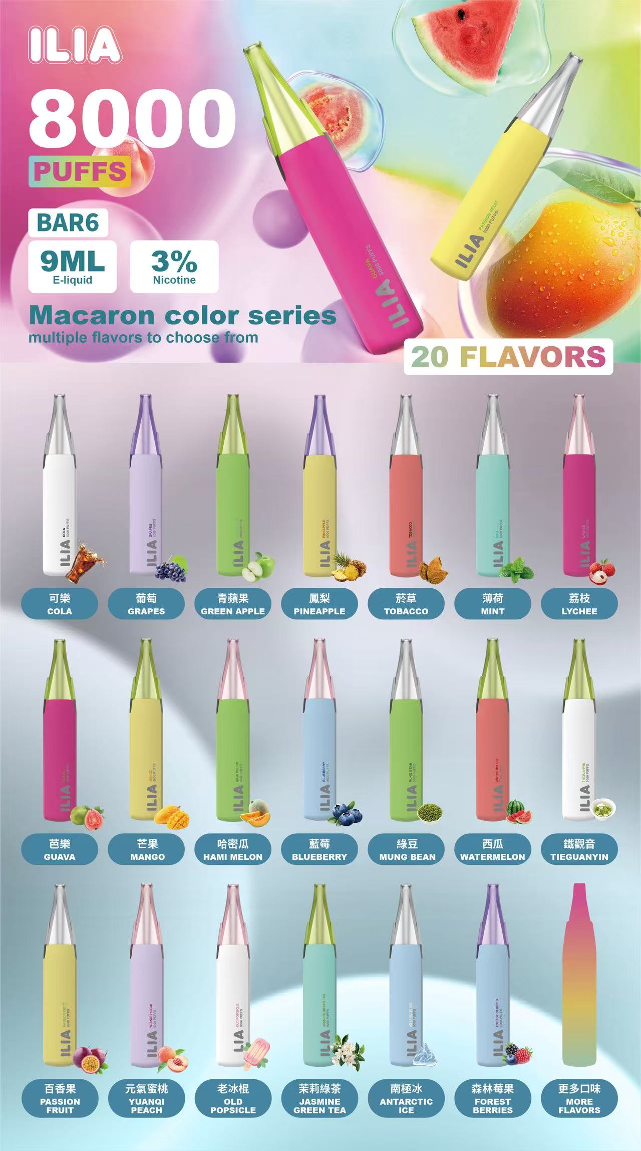 ILIA哩亞6代 拋棄式電子煙 是ILIA BAR系列中最新升級版本,擁有高達8000口超大容量與穩定輸出體驗。全新鴨嘴獸造型設計,握感舒適,霧化口感更加細膩順滑。採用原廠正品芯片與高品質電池,煙霧綿密濃郁,每一口都還原真實煙感。ILIA BAR6 支援多種熱門口味選擇,包括冰葡萄、荔枝冰、藍莓薄荷等,每款都清涼爽口、持久耐抽。內建智能氣流感應設計,無需按鍵,開盒即可使用,方便攜帶。全家、7-11貨到付款皆可,正品保證,品質穩定,適合台灣電子煙愛好者日常使用。立即體驗ILIA哩亞六代,享受極致煙霧與風味的新世代快感!